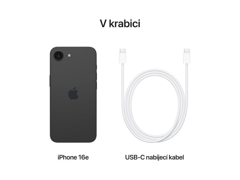 Nejnovější iPhone. Neodolatelná cena. Krásný a odolný. Obstojí ve zkoušce času.iPhone 16e má po všech stránkách parádní design. Prodává se v elegantním černém nebo bílém provedení. Plášť iPhonu 16e z leteckého hliníku je konstruovaný tak, aby něco vydržel a ustál všechny nástrahy každodenního života.Přední stranu iPhonu 16e chrání Ceramic Shield, který je mimořádně odolný a jen tak něco ho nerozhází. Navíc je iPhone 16e utěsněný proti polití, vodě a prachu.Brilantní OLED displej od okraje k okraji na iPhonu 16e se stejně ohromným kontrastním poměrem jako na iPhonu 16 je úplně ideální na sledování seriálů, hraní her nebo čtení.*Hliníková konstrukce*Ceramic Shield na přední straně*Skleněná zadní strana*Vyhovuje specifikaci IP68 (až 30 minut v hloubce do 6 metrů) podle normy IEC 60529Operační systém: iOS 18Uživatelská paměť [GB]: 256Čip: *Čip A18*Nové 6jádrové CPU se 2 výkonnostními a 4 úspornými jádry*Nové 4jádrové GPU*Nový 16jádrový Neural EngineDisplej - úhlopříčka [palce]: 6,1palcový (úhlopříčně) OLED displej přes celou plochu, Super Retina XDR displejDisplej - rozlišení [pix]: Rozlišení 2532 × 1170 při 460 pixelech na palecDotykový displej: AnoKlávesnice: NePodporované sítě: *5G (pásma sub-6 GHz) s technologií MIMO 4×4*Gigabitové LTE s technologií MIMO 4×4SIM karta:*Podpora dvou SIM (nano-SIM a eSIM)*Podpora dvou eSIMUrčování polohy: *GPS, GLONASS, Galileo, QZSS, BeiDou a NavIC*Digitální kompas*Wi-Fi*Mobilní síť*Mikrolokalizace iBeaconKonektivita: * Wi-Fi 6 (802.11ax) s technologií MIMO 2×2*Bluetooth 5.3*NFC s režimem čtečky*Expresní karty s energetickou rezervou*USB-C konektorSenzory: * Detekce autonehody*Face ID*Barometr*Gyroskop s vysokým dynamickým rozsahem*Akcelerometr snímající vysoké přetížení*Snímač blízkosti*Dva snímače okolního osvětleníFotoaparát: Fotosoustava 2 v 1*48MP Fusion fotoaparát: 26 mm, clona f/1,6, optická stabilizace obrazu, Hybrid Focus Pixels, fotky v supervysokém rozlišení (24MP a 48MP)*Taky podporuje 12MP 2× přiblížení: 52 mm, clona f/1,6, optická stabilizace obrazu, Hybrid Focus PixelsFotoaparát*4K video v Dolby Vision při 24 fps, 25 fps, 30 fps nebo 60 fps*1080p video v Dolby Vision při 25 fps, 30 fps nebo 60 fps*720p video v Dolby Vision při 30 fpsTrueDepth kamera*12MP fotoaparát*Clona f/1,9Face ID*TrueDepth kamera na rozpoznávání obličejeBaterie:*Podpora rychlého nabíjení: Nabití až na 50 % za 30 minut 20W adaptérem nebo silnějším (prodává se zvlášť) připojeným k USB-C nabíjecímu kabelu*Zabudovaná dobíjecí lithium-iontová baterie: Bezdrátové nabíjení s podporou Qi nabíječek*Přehrávání videa: až 26 hodin*Přehrávání videa (streamovaného): až 21 hodin*Přehrávání zvuku: až 90 hodinRozměry [mm]: *Šířka: 71,5 mm*Výška: 146,7 mm*Tloušťka: 7,8 mmHmotnost [g]: 167 gObsah balení: *iPhone s iOS 18*USB-C nabíjecí kabel (1m)*DokumentaceDoplňkové parametry