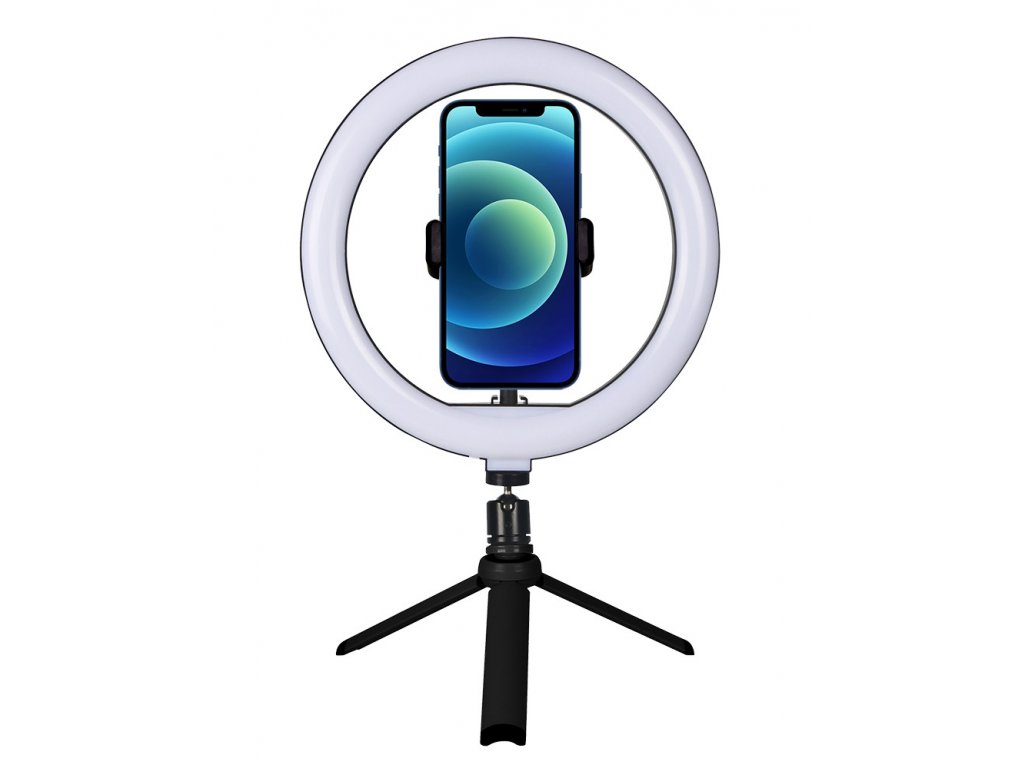 Balení obsahuje: držák na telefon, tripod a LED světlo.